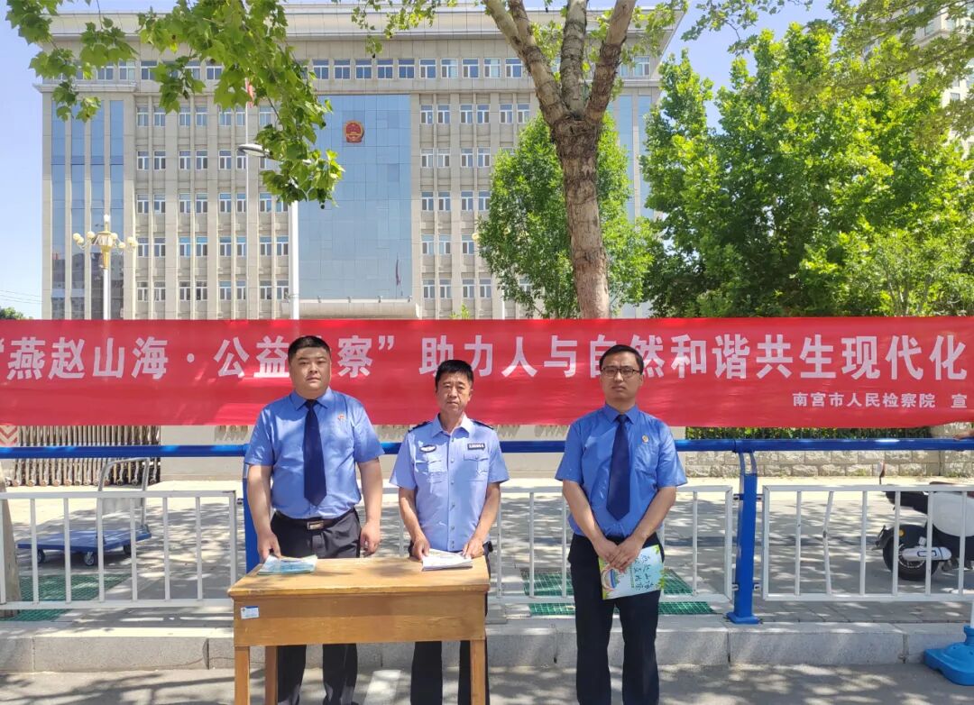 为进一步推动“燕赵山海·公益检察”护航美丽河北建设专项监督走深走实,提高人民群众保护环境、爱护环境的意识。6月9日上午,南宫市人民检察院开展了“燕赵山海·公益检察”助力人与自然和谐共生现代化的主题宣传活动。此次活动中,南宫市人民检察院以悬挂“‘燕赵山海·公益检察’助力人与自然和谐共生现代化”为标题的条幅,向群众发放宣传资料、提供法律咨询、介绍公益诉讼检察为主要形式,围绕人民群众身边的环境问题,重点向群众介绍了公益诉讼检察职能、“燕赵山海·公益检察”护航美丽河北建设专项监督等相关情况,鼓励人民群众检举、揭发生态环境和资源保护领域违法犯罪行为。此次活动,共发放宣传资料200余份,接受群众咨询20余人次。