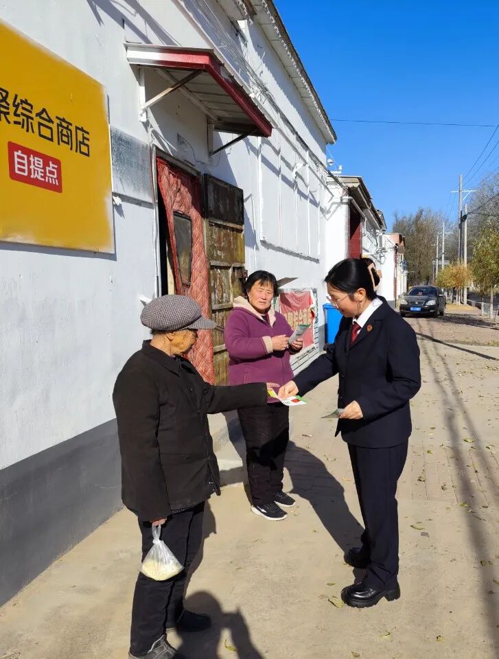 “您好!我是检察院的工作人员,您在生活中什么法律问题都可以咨询我们,对平安南宫建设工作有什么好的建议也可以告诉我们,我们会如实记录……”南宫市人民检察院的干警们对群众说道。 为进一步提高群众对平安建设的知晓率、参与率和满意度,营造群众“学法、遵法、守法、用法”的良好氛围,切实增强群众的法治观念和安全防范意识,南宫市人民检察院持续开展“平安建设进万家”活动。活动中,检察干警深入包联村镇开展平安建设入户宣传活动,通过展板演示、设置法律咨询台、发放宣传单等形式,向过往群众宣传平安建设工作的意义和重要性,并结合职能宣传燕赵山海·公益检察专项监督、12309检察服务中心职能以及未成年人权益保护等内容。干警通过与群众“拉家常”,真实掌握群众的困难诉求、思想动态以及邻里关系等,用通俗易懂的语言耐心解答群众提出的法律问题。同时,呼吁群众耐心配合群众安全感满意度调查工作,提高对平安建设的知晓度、支持率和参与率,切实让群众对检察工作成果全面真实、客观公正地作出积极评价。此次活动累计发放宣传手册300余份,接待群众咨询50余人次,释法说理9件。