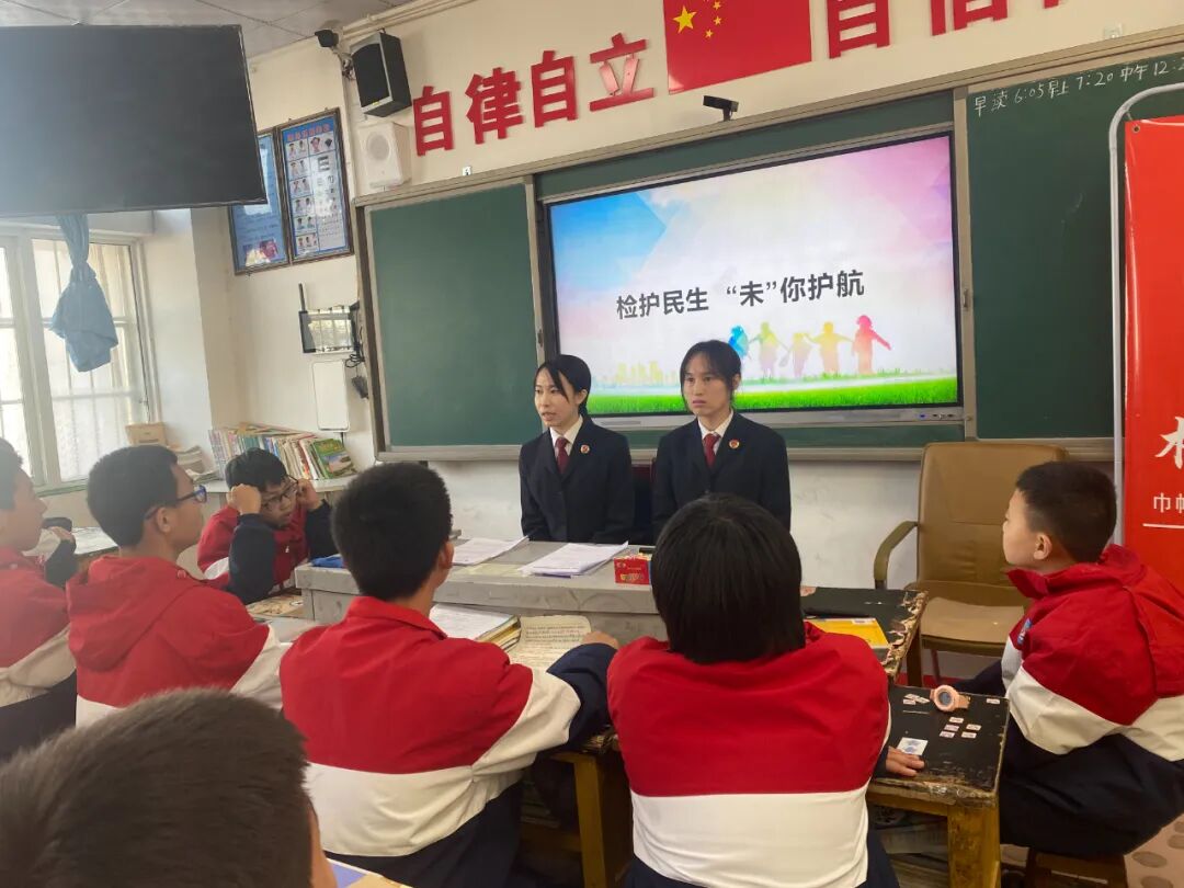 在互动环节,干警向师生们介绍了现阶段开展的“检护民生”专项行动,针对有关校园欺凌涉及到的一些基本法律知识设计了系列问题,同学们积极踊跃发言。此外,对涉未成年人性侵犯罪等进行了普法宣传,进一步提升了未成年人预防侵害能力。
