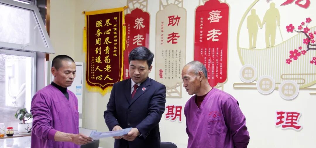 为切实加强老年人特殊群体权益的保障力度,3月27日,南宫市人民检察院党组书记、检察长南海京带领民事检察部门检察官到南宫市南便村乡卫生院医养结合中心进行实地察看和走访慰问。走访中,南海京检察长对该中心食品安全、日常管理、居住条件、消防安全设施等情况进行了详细了解,通过开展面对面交流、发放宣传手册等方式,向医养的老年人介绍了检察机关正在开展的“检护民生”专项行动,并结合典型案例,针对一些不法分子借助保健品推广、虚假养老投资等方式实施的诈骗行为作了讲解,提醒老年人在日常生活中要提高警惕,守护好自己的“养老钱”。