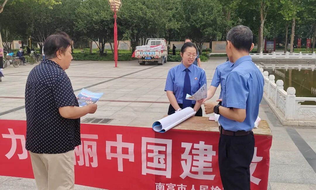 2024年6月5日是第53个世界环境日。为深入践行习近平法治思想和习近平生态文明思想,持续深化“燕赵山海·公益检察”护航美丽河北建设专项监督,2024年6月5日,南宫市人民检察院联合邢台市生态环境局南宫分局等多家单位在南宫市人民公园开展以“全面推进美丽中国建设”为主题的宣传活动。