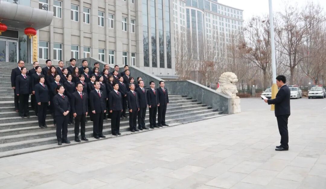 2月18日,春节后上班第一天,南宫市检察院举行隆重的升国旗仪式,全体干警提振精神,凝聚力量,以崭新的姿态、良好的精神面貌和饱满的热情开启了新一年的工作。
