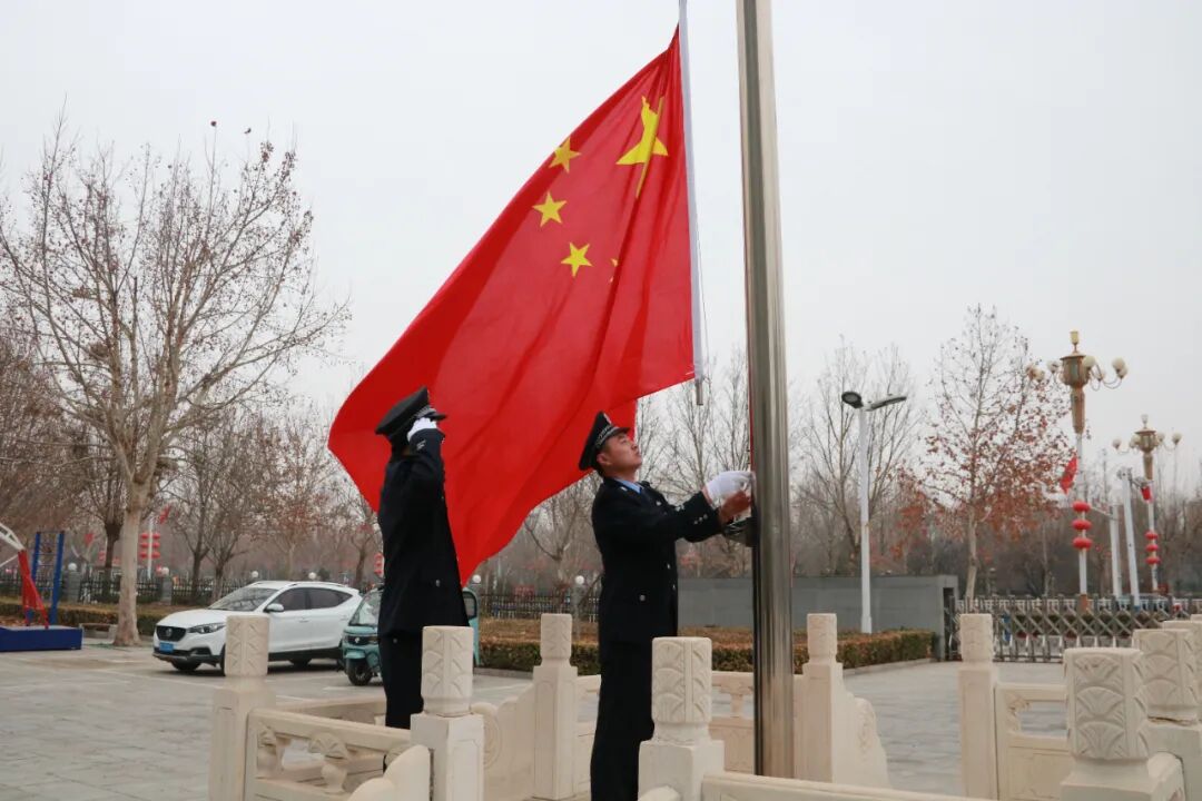 上午9时,随着雄壮激昂的国歌声响起,升旗手振臂一挥,鲜艳的五星红旗冉冉升起,迎风飘扬。全体干警着装整齐、精神饱满,列队在办公楼前向国旗行注目礼,以崭新的面貌迎接新的一年,共同祝愿伟大祖国繁荣昌盛,祝愿检察事业再创辉煌!